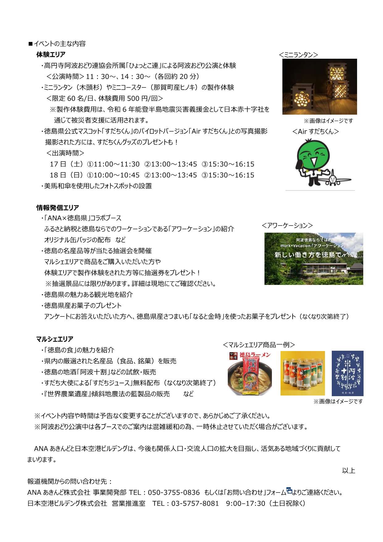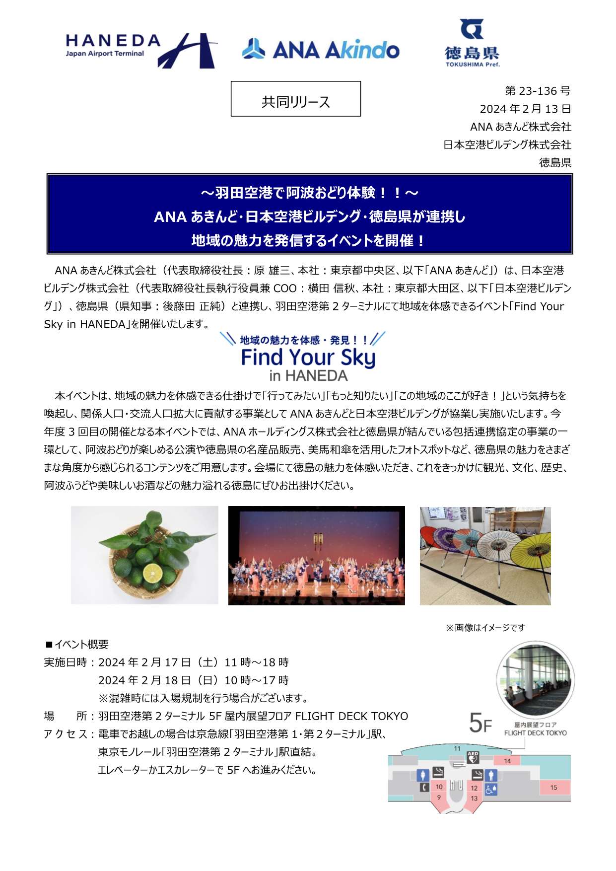 2/17(土)、18(日) 羽田空港第2ターミナル5階において、阿波おどりが楽しめる公演や徳島県の名産品販売、美馬和傘を活用したフォトスポットなど、徳島県の魅力をさまざまな角度から感じられるイベントが開催されます。