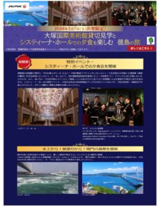 「大塚国際美術館貸切見学とシスティーナ・ホールでの夕食を楽しむ 徳島の旅」へのご参加お待ちしています。