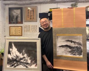 矢形先生は、幼少より書道を学び、水墨画の道へ進まれ、国内外でご活躍されている作家です。海外での展示・指導など世界に水墨画の魅力を発信されています。